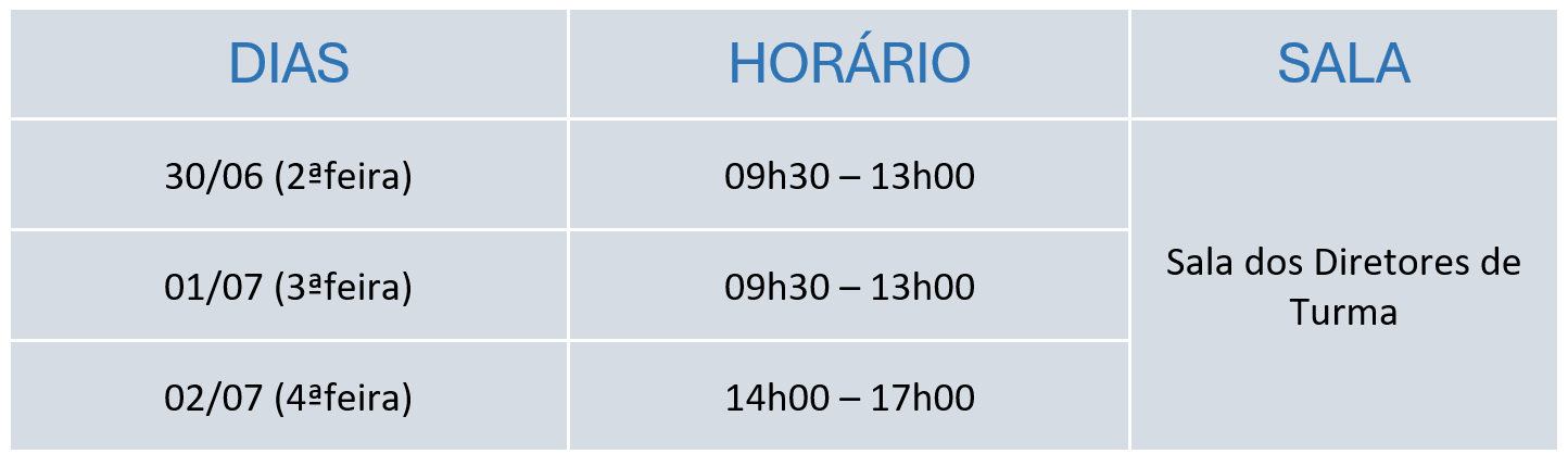 09h00 às 13h00 e das 14h00 às 16h30 |