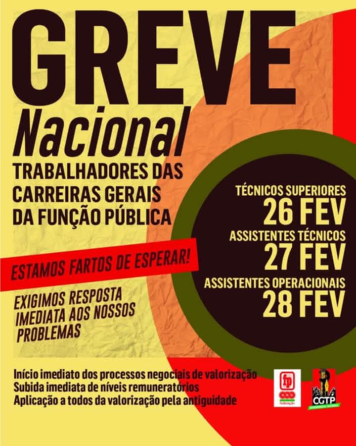 Pré-aviso de greve para o dia 23 de outubro que abrange os trabalhadores da administração pública.